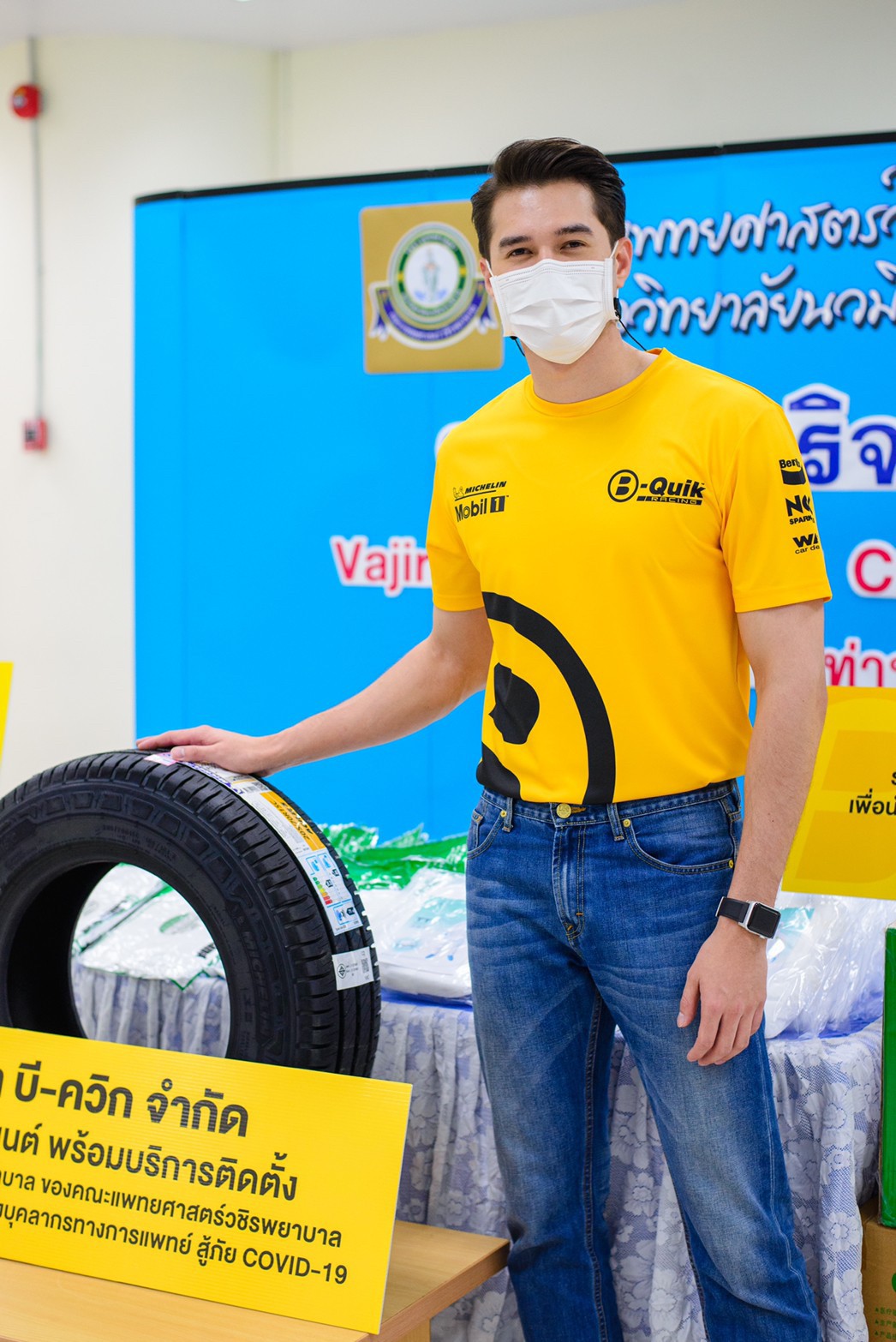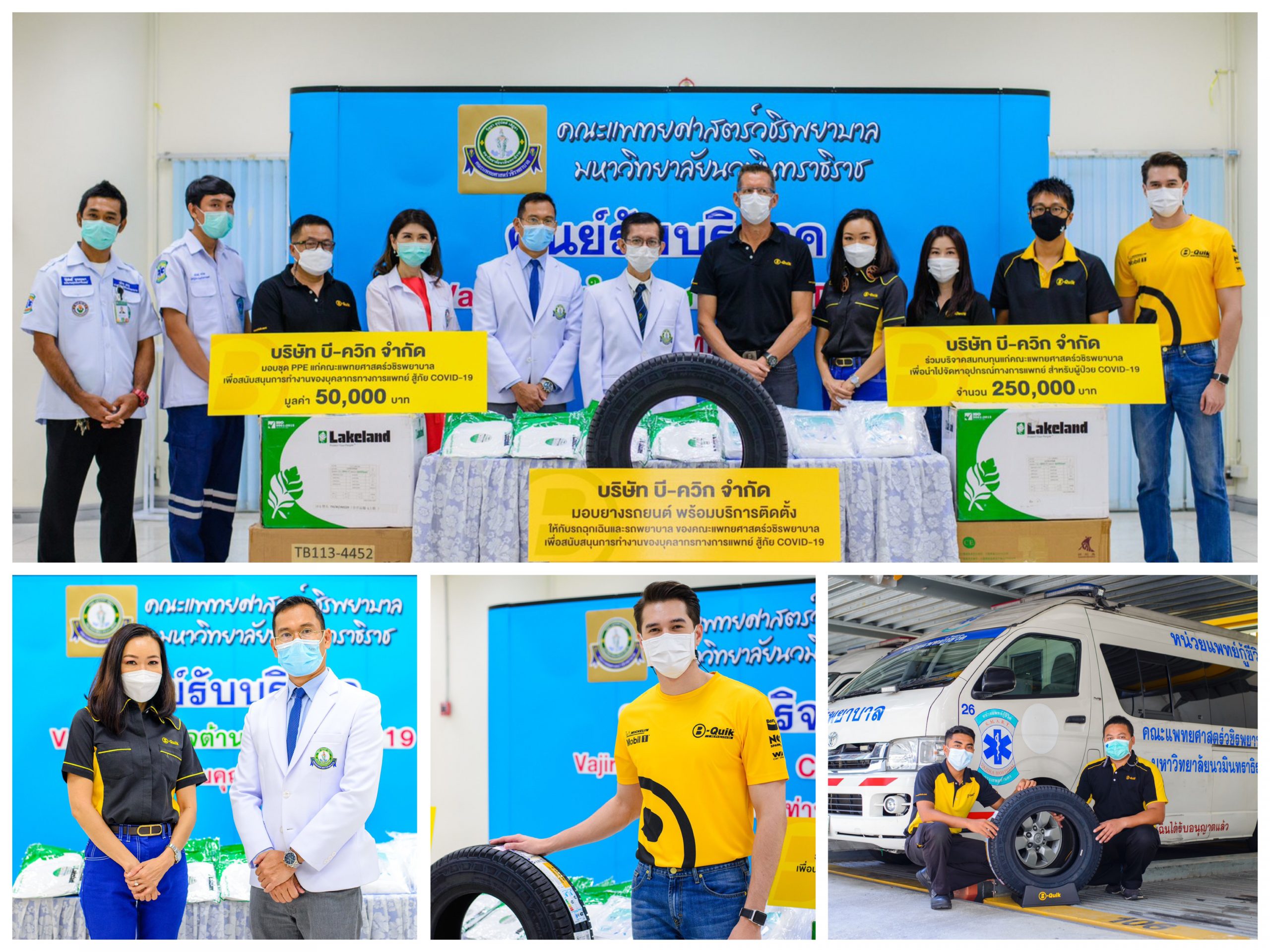 นอกจากนี้ บี-ควิก ยังได้มอบยางรถยนต์พร้อมบริการติดตั้งให้กับรถฉุกเฉินและรถพยาบาลของคณะแพทยศาสตร์วชิรพยาบาล เพื่อสนับสนุนการทำงานของบุคลากรทางการแพทย์ สู้ภัย COVID-19 โดยมี ผศ.นพ.จักราวุธ มณีฤทธิ์ คณบดีคณะแพทยศาสตร์วชิรพยาบาล มหาวิทยาลัยนวมินทราธิราช, รศ.ดร. เมษัณฑ์ ปรมาธิกุล ผู้ช่วยศาสตราจารย์คณะแพทยศาสตร์วชิรพยาบาล และ รศ.พญ.ธนันดา ตระการวนิช รองอธิการบดีมหาวิทยาลัยนวมินทราธิราช เป็นผู้รับมอบ ณ ลานอเนกประสงค์ ชั้น 6 อาคารเพชรรัตน์