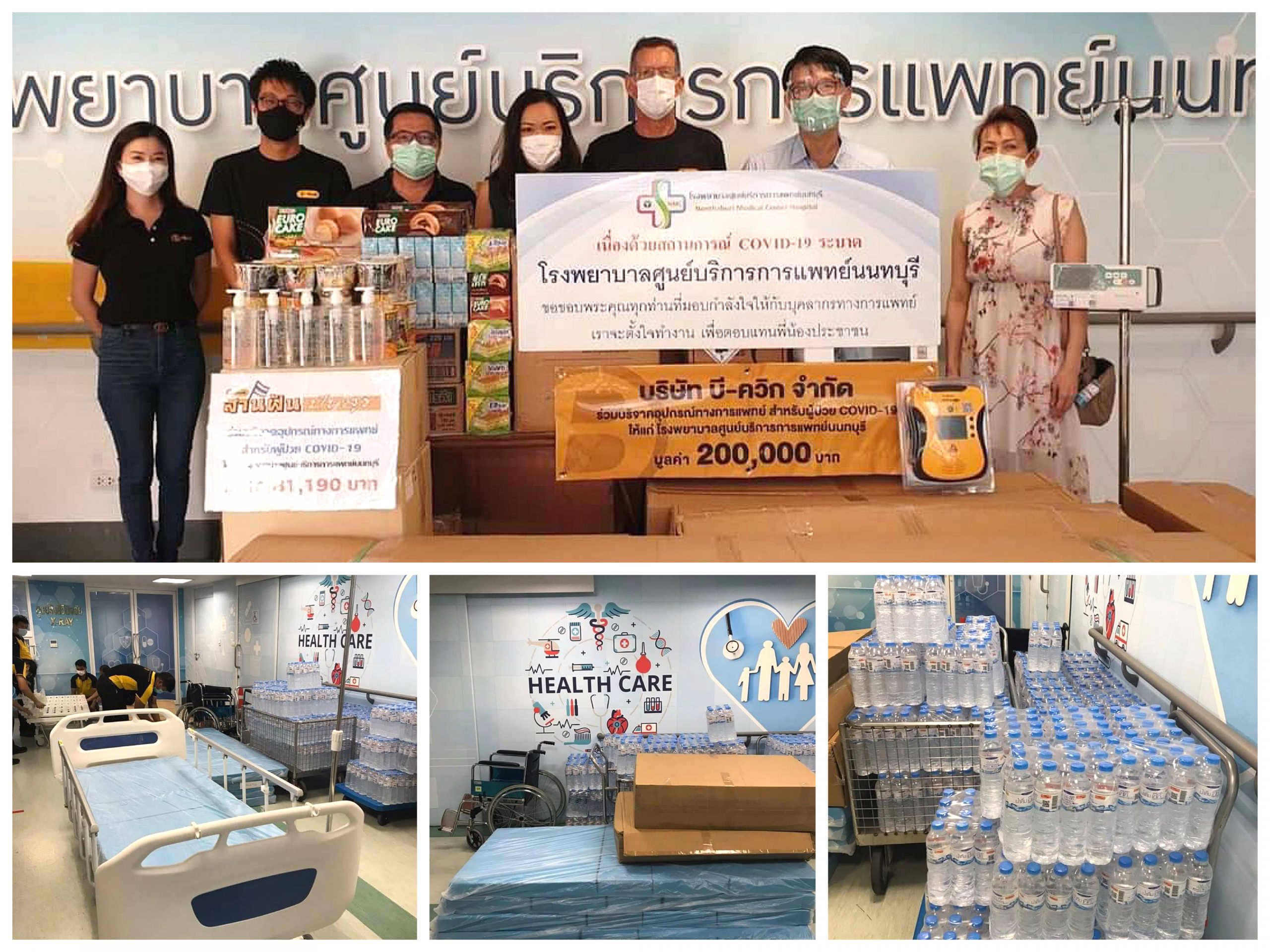 บี-ควิก ศูนย์บริการรถยนต์ครบวงจร ร่วมบริจาคอุปกรณ์ทางการแพทย์ สำหรับผู้ป่วย COVID-19 ให้แก่โรงพยาบาลศูนย์บริการการแพทย์นนทบุรี มูลค่า 200,000 บาท ได้แก่
